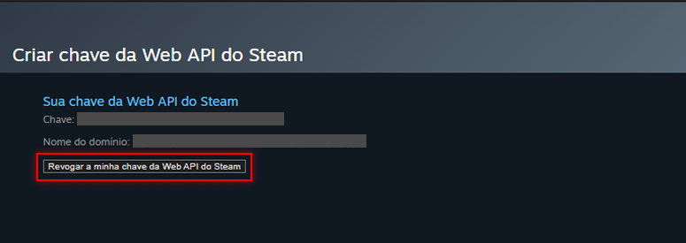Acesse a página de API da Steam. Se houver QUALQUER chave gerada lá que você não criou (geralmente com nome 'localhost' ou aleatório), REVOGUE IMEDIATAMENTE. Usuários comuns não precisam ter chave API gerada.